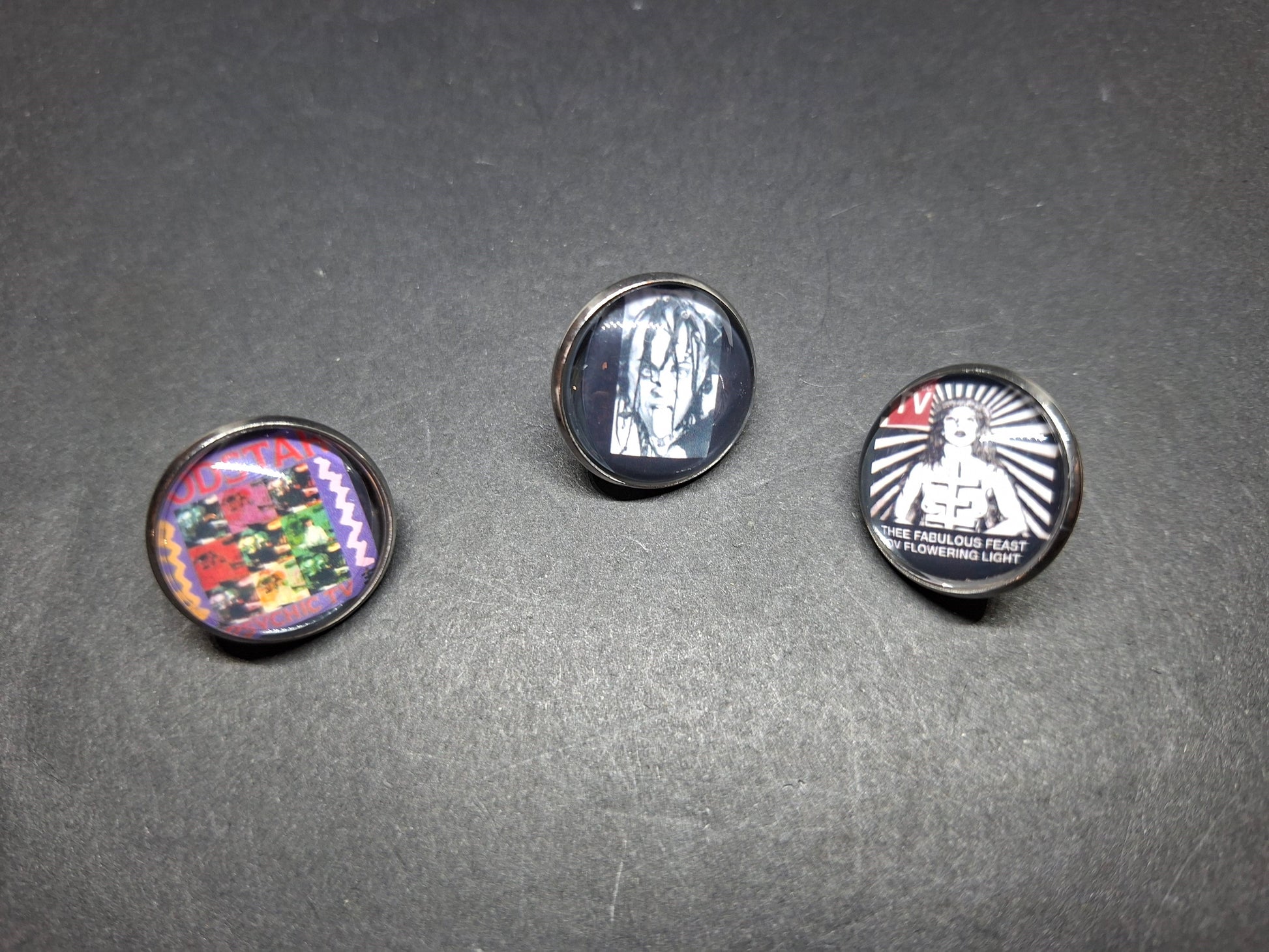 Gothic Goth Old School 1980's Alternative Psychic TV TOPY Thee Temple ov Psychick Youth Genesis P-Orridge Inspired set of three pin badgesV2