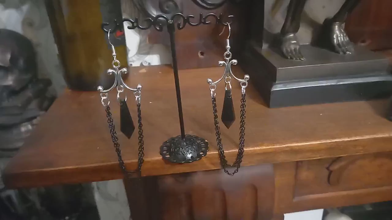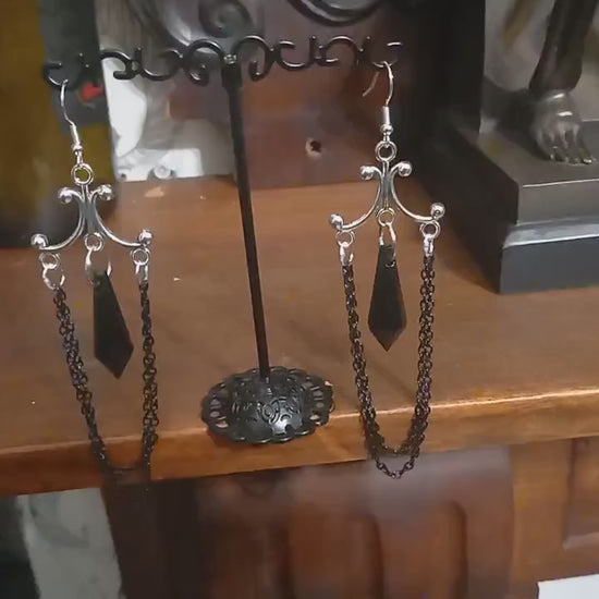 Oddity Curiosity Goth Gothic Witchy Killstar "Chandelier" Black chains and acrylic crystal earrings